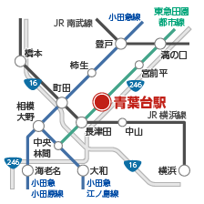 中央林間駅から青葉台駅まで電車で 8 分程度/大和市役所から当所まで車で 14分程度/町田市役所から当所まで車で22 分程度/座間市役所から当所まで車で 22 分程度/海老名市役所から当所まで車で 26 分程度/中山駅から青葉台駅まで電車で 14 分程度/宮前平駅から青葉台駅まで電車で 17 分程度/柿生駅から当所まで車で 16 分程度/若葉台団地からバスで来所する場合の時間約 23 分(つつじが丘バス停まで 20 分、徒歩 3 分)